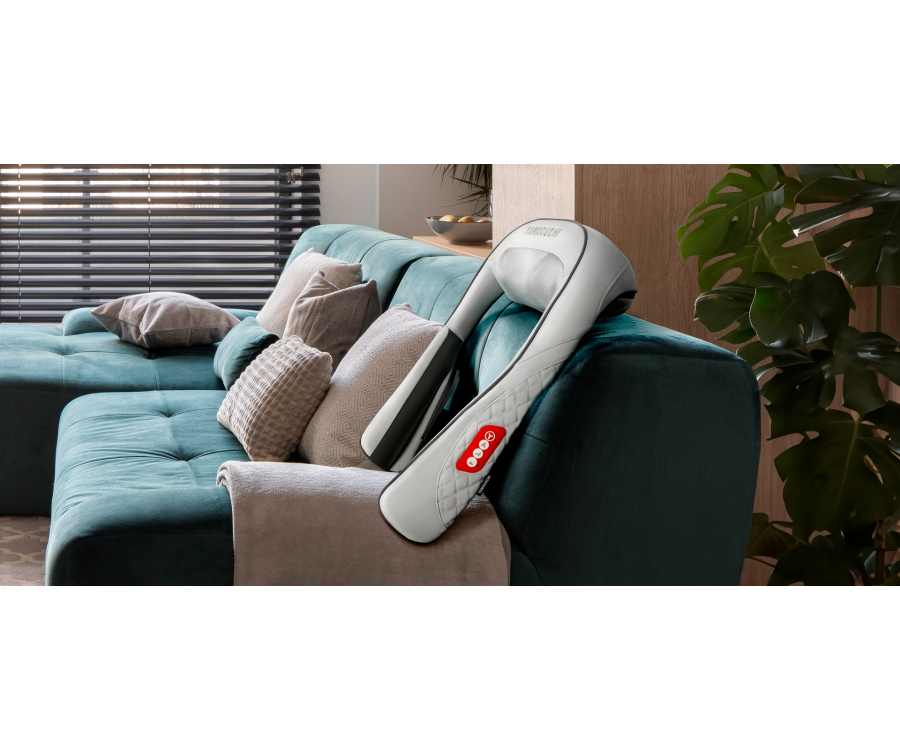 Встроенное перкуссионное воздействие массажных роликов способствует тщательной проработке триггерных точек на теле, а мягкий прогрев усиливает эффект массажа, ускоряет расслабление и делает процедуру особенно комфортной.